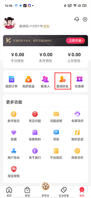 6、副业赚钱机制支持自购返利与分享商品获取佣金