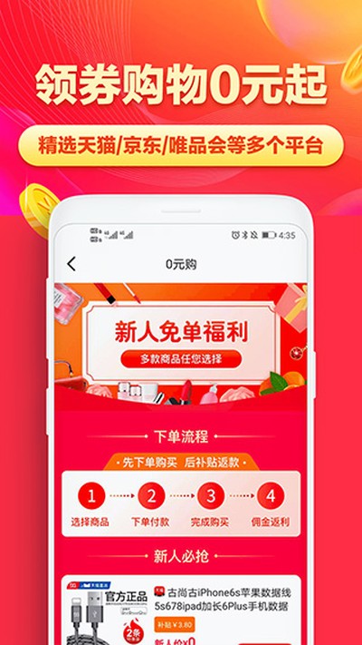2、精选优惠产品提供领券下单服务,整合热销榜单与新人专享福利