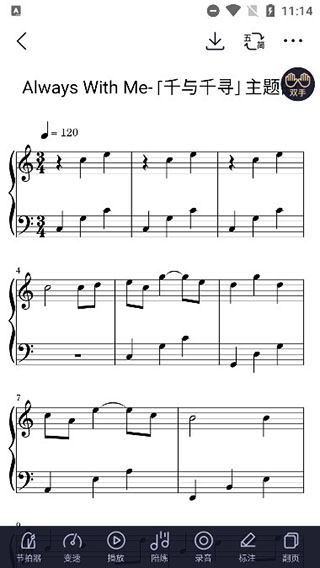 5、点开曲谱,就可以直接开练了,界面还挺直观的。