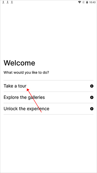 1、打开App,看到主界面那个大大的“Take a tour”没?直接点它。