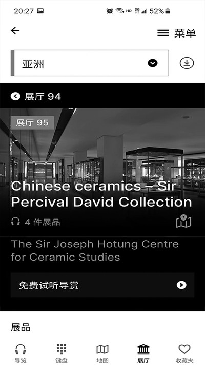 3、探索展厅:展厅都按文化和主题分好类了。如果你知道展厅号,直接输入号码就能跳转过去,非常直接。