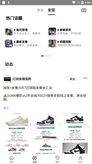 3、切换到“发现”这个板块,能看到很多最新的潮流资讯。如果看到自己感兴趣的账号或者内容,点个关注,以后就能持续追更了。