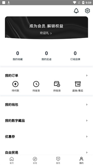 5、最后是“我的”页面,这里就是你的个人中心了,你收藏过的藏品、浏览过的足迹、订阅的品牌信息,都可以在这里找到。
