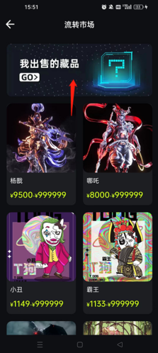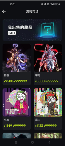 3、这样就进入了流转市场,这里就是大家交易藏品的地方。你可以慢慢浏览,选择自己喜欢的数字藏品,然后按流程购买就行了。