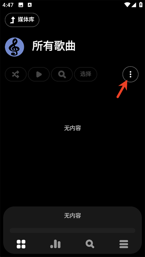 3、接着,我们点击图中箭头指着的位置,准备开始添加新的音乐文件。