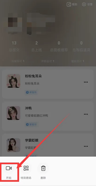 然后就进到菜单界面了,从列表里选一个你想拍的特效,直接点它旁边的【开拍】。大家看下面这张截图就明白了。