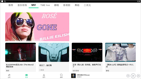 2、你也可以切换到“视频”这个页面,专门看各种MV。