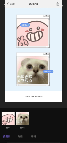 7、上千种贴纸,真的每天换着用都用不完,不管是拍照片还是短视频,都能找到好玩的元素。