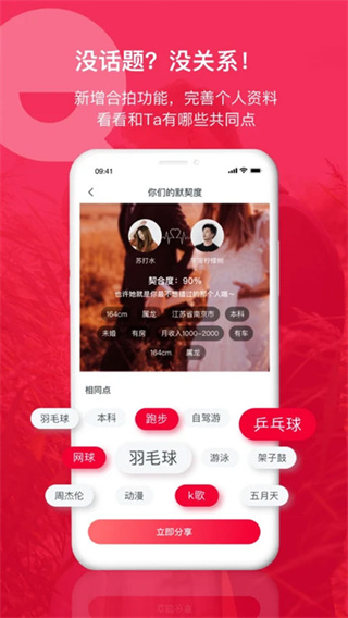 3、新增性格测试功能,比如有大五人格测试,轻松了解对方的性格,帮助单身男女更全面地认识潜在对象。