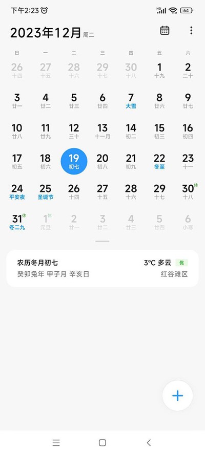 1、界面风格挺干净的,各种日历信息都清清楚楚,没有乱七八糟的东西碍眼。