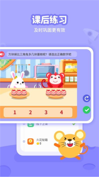 火花线下课APP是专为火花线下双师课学员设计的数学思维学习工具,提供丰富的课程资源和AI双师互动课堂,通过多人游戏化复习和个性化教学,帮助孩子巩固知识、激发学习兴趣,家长可随时查看学习评估报告,全面掌握孩子学习进度,是提升孩子数学能力的理想伴侣。