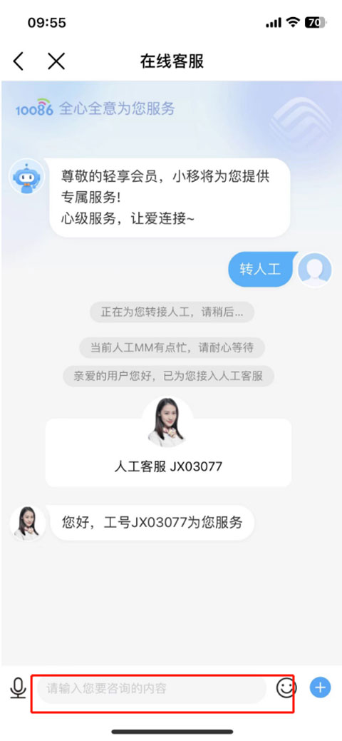 4、看到这个界面就说明成功了,现在你就可以把你的问题噼里啪啦打字发给真人客服了。