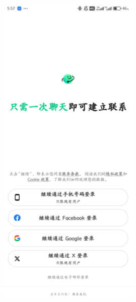 2、打开后可以看到多种登录方式,可通过手机号、Google、X、电子邮件登录,自由选择。