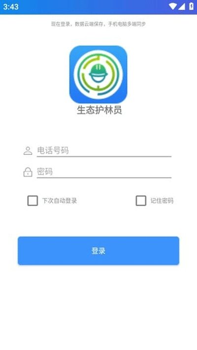 1、下载安装应用并打开生态护林员巡护APP,进入登录界面。