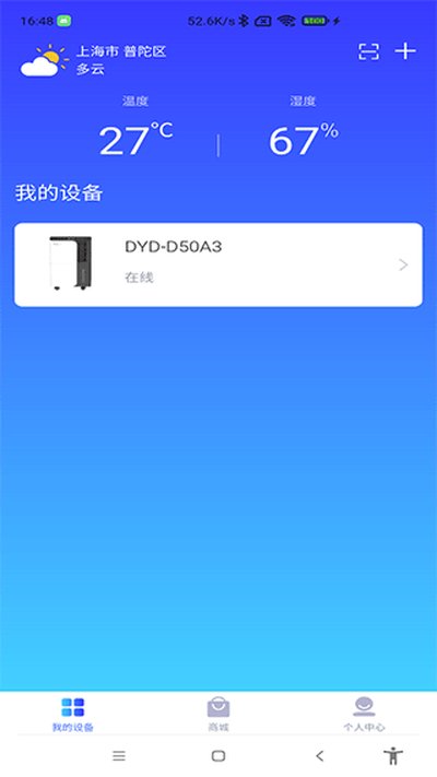 一、打开德业智能除湿机app,在首页中点击添加设备
