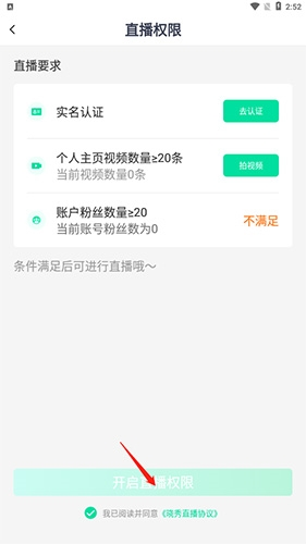 2、当然了,得先满足平台的一些基本要求。只要条件够了,点那个“开始直播权限”,你就可以马上开播分享你的生活了。