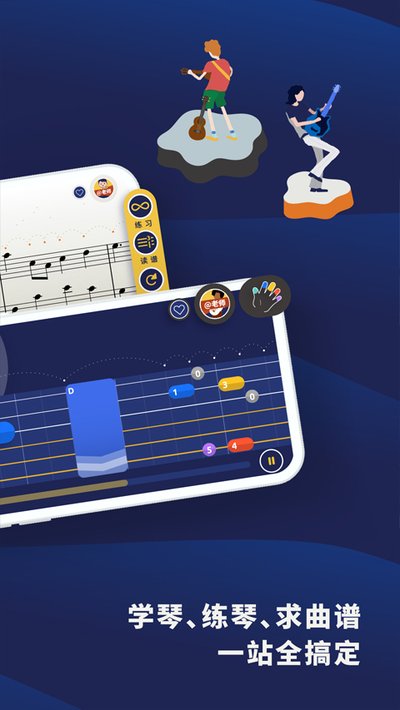 5、它将吉他塑造成一个有趣的音乐玩具,让用户在轻松自在的心态下,将练习与音乐娱乐融为一体。。