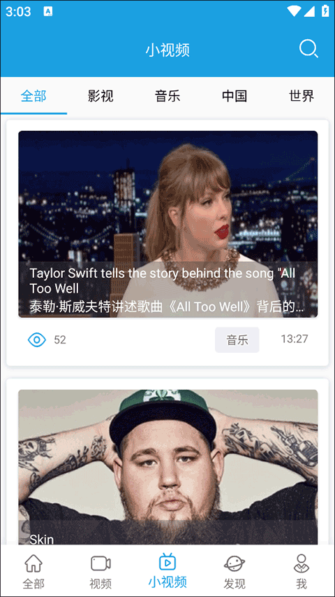2、除了文章,它还有视频和小视频。在这两个界面里,你也可以翻一翻或者直接搜你想听的内容。
