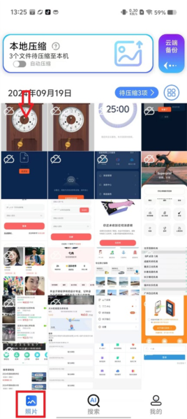 1.第一步:打开App后,点击“照片”选项,它会自动开始扫描并压缩你手机相册里的图片。你可以选择一张,也可以一次性勾选多张图片进行处理。大家看下面这张截图,就是选择照片的界面。