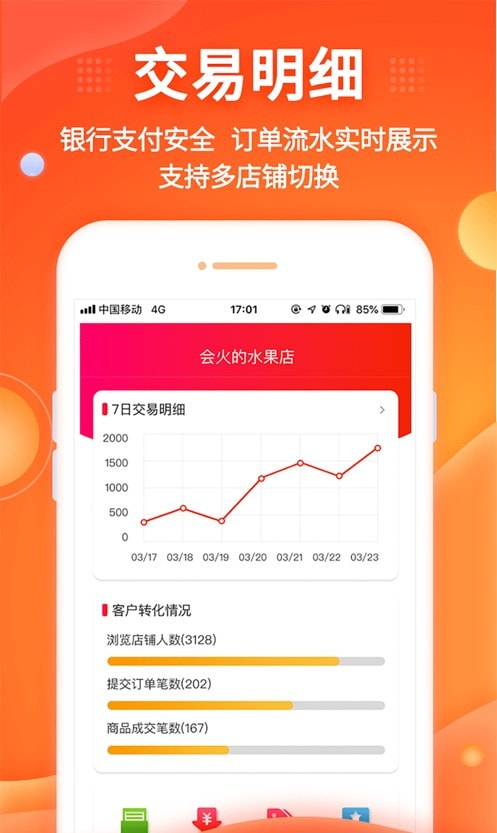 它最大的优势就是银行级别的支付安全,让人用着没顾虑,订单流水也是实时更新的,随时能看。要是你有好几家店,切换管理也特别流畅。它还能帮你快速搭建一个线上店铺,管理库存、在线改价、跟顾客讨价还价,甚至还能搞预付定金的模式,让交易更快达成。里面内置了好几套活动模板,帮你把生意做得更活。员工的营销业绩能实时看到,老板就算不在店里也能远程“巡店”,还能给不同员工设置不同的操作权限,省心又安心。