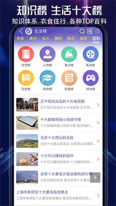 这个功能是核心,老玩家应该都知道。不管是国内的十大品牌,还是各种有趣的、长知识的TOP10榜单,这里都能找到。