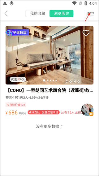 3、看到截图里这个界面没,你之前看过的所有房子都在这儿。想清空的话,就点一下右上角的那个“清空”按钮,一步搞定。