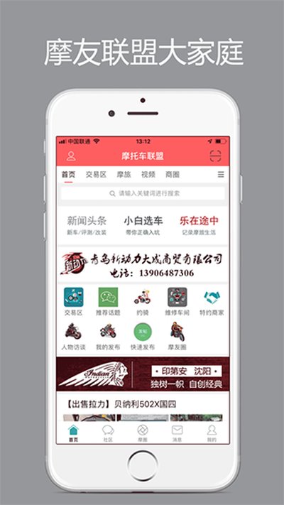 1、第一步肯定是在手机上把“东北摩托车联盟”这个App给装好,下完直接打开就行。