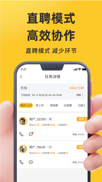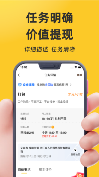 2.对于需要临时人手的雇主来说也特别方便,直接在App里就能发布招聘需求,快速找到合适的零工。