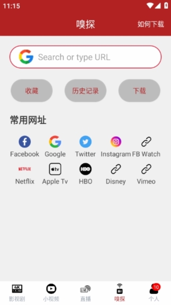 4、还有一个挺牛的功能,视频嗅探。讲真,这个嗅探功能的界面做得稍微有点朴素,但功能是实打实的好用。你只要把视频链接复制进去,它就能帮你解析出来,轻松下载到手机里。