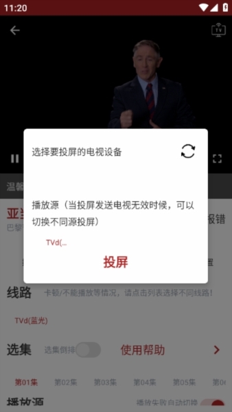2、点了之后,它就会开始搜索你家里的投屏设备了。点一下刷新就能看到可以用的电视,选中你要投的那个设备,再点一下投屏就搞定了。