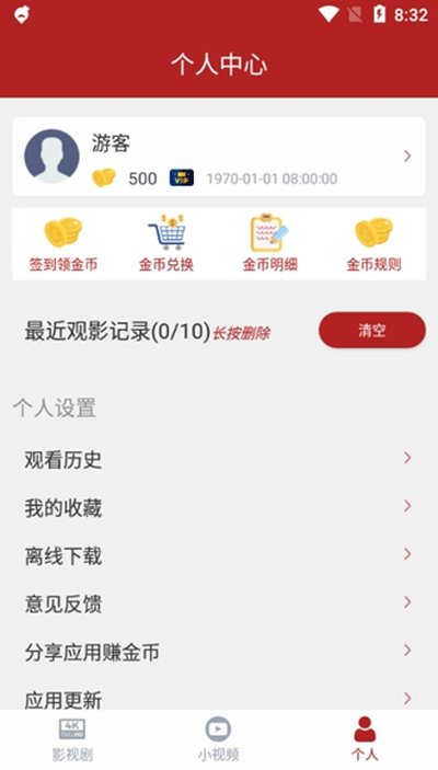1、进入应用,屏幕下方的导航菜单一目了然地列出了【影视剧】、【小视频】、【直播】、【嗅探】和【个人】中心这五个核心功能分区。。。。