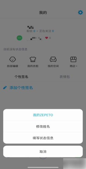 点了那个绿色图标后,屏幕底部会弹出一个菜单,有三个选项,咱们选最上面那个“我的zepeto”。