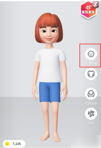 2. 看到右边那个【脸部编辑】按钮了吗?点进去,默认打开的就是发型库;