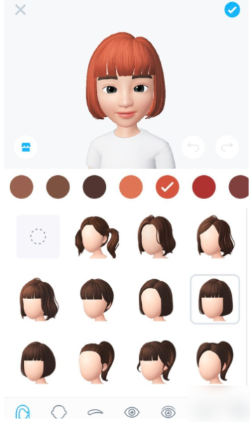 5.都调整满意之后,别忘了点击人物头顶上那个蓝色的【对勾】,这样你的新发型就保存成功啦。