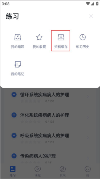 3、题库下载好了之后,想找它在哪儿,就回到对应题库的“练习”页面,点右上角那个按钮。