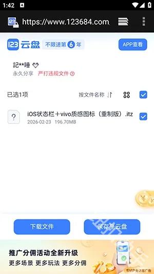5、不得不说,下载走了个123网盘,稍微有点绕,但好在速度还行。跟着网盘的提示把主题包下到手机里,后面就能直接应用了。
