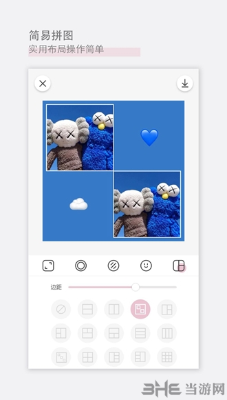 4、等所有照片都放好之后,看到右上角那个下载箭头没?点一下它,你做好的拼图就保存到手机相册里啦!