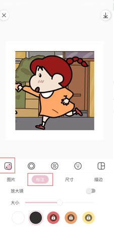 3、这时候你就能看到放大镜的图标了,点击它,就可以在图片上圈出想放大的地方了,超级简单。