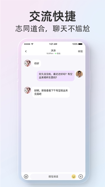 一旦发现您感兴趣的对象,便能立刻与对方开始在线沟通。。