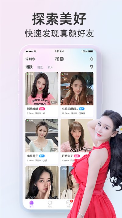 探颜APP算是一款质量不错的交友软件了,它给每个想交朋友的人提供了很多选择,通过这个平台确实能认识不少新朋友;对了,它那个动态功能设置得挺好,不仅能随时看到别人的生活趣事,也能很方便地在上面分享自己的日常。确实能省下不少折腾的时间。