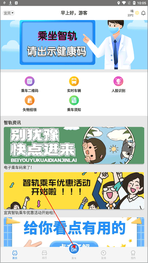 1、下载好App,先在主页找到那个‘乘车’按钮,就是下面截图里这个。