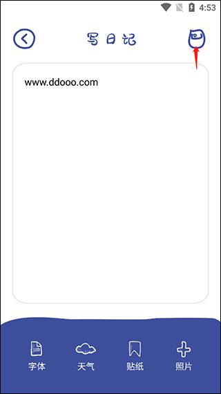 3、这样就可以写日记了,写完点击右上角的包裹小图标就能保存了。