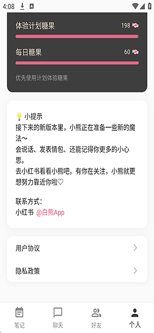 1、打开白熊AI聊天软件,就可以开始记录你的想法和日常了。