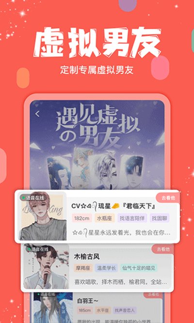 这软件的功能确实挖得挺深,里面藏着不少有意思的小玩意儿,一玩起来就容易上头。良心讲,最吸引我的还是它把阿杰、边江、柒夜这些配音圈的大神都请来了。不管你是沉迷动漫、小说还是游戏,你喜欢的东西在这儿基本都能找到组织。它的群聊功能特别好用,能把一群有共同话题的人聚在一起,想聊啥就聊啥,氛围超棒。
