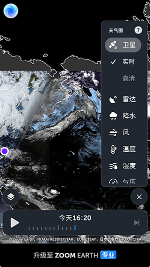 1、它能给你看几乎是同步的卫星天气图。图片差不多10分钟就刷新一次,延迟也就20到40分钟,这已经相当快了。