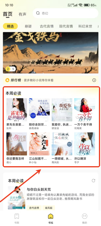 6、划重点,系统会悄悄记录你的阅读习惯,比如你老是搜某一类的小说,它就会分析你的口味,然后给你量身推荐更多合你胃口的书。大家看下面这张截图,就是它的推荐界面。