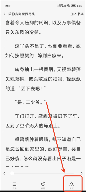 3.看到阅读界面右下角那个“设置”按钮没?对,就点它。