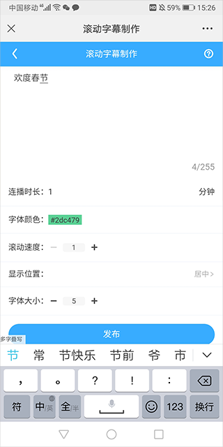 4、划重点,它还能设置滚动字幕,这个功能很实用。比如你想加个“全场八折”之类的,就在手机上编辑。就是下面截图里这个设置的地方。