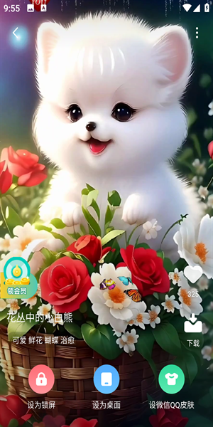 2、点开一张你相中的壁纸, 就能看到“设为锁屏”、“设为桌面”这些选项, 还能直接套用到微信QQ聊天背景。