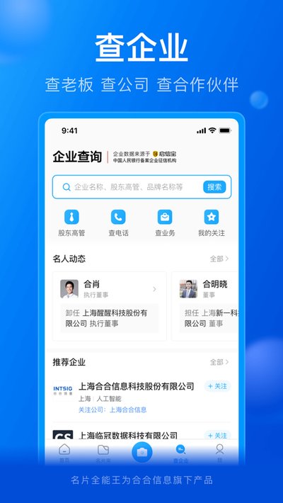 划重点,扫完客户的名片,你只要点一下名片里的公司名,这家公司的注册资本、信用状况、专利信息啥的就都出来了。讲真,这些信息虽然都是公开的,但自己一个个去查能累死人,它这就是个整合器,省事儿。如果你是做金融、投资或者法务的,这些资料能让你对一个公司的基本情况心里有个谱。